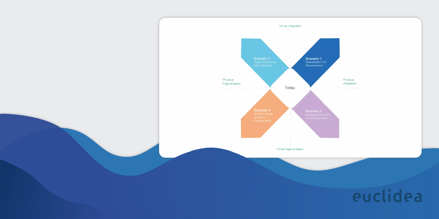 Sono stati presi in considerazione due parametri che influiscono sulla globalizzazione: quello fisico e quello virtuale/tecnologico. Le spinte nazionaliste potranno contemplare entrambi o uno solo di essi. Ci muoveremo in un mondo unito da internet, ma con barriere fisiche oppure, una volta finita la guerra e superato il Covid, torneremo ad una globalizzazione totale, ma più consapevole? Oppure ci saranno aree geografiche aperte allo scambio commerciale e alcuni paesi invece chiusi al resto del mondo?